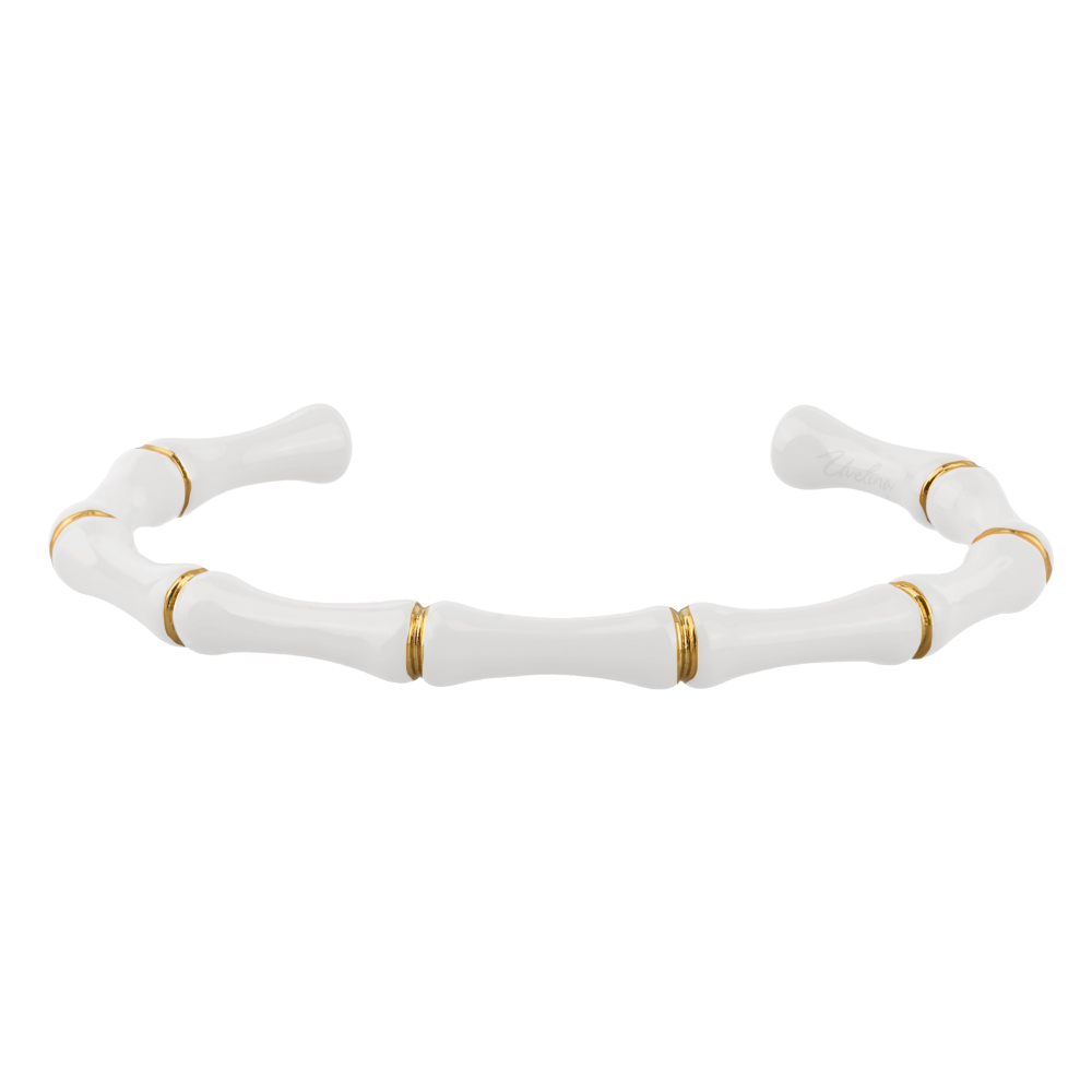 Описание: Изготовлено из ювелирного сплава на основе латуни с гальваническим покрытием золотом. Изделие украшает белая эмаль. Ширина 3мм.