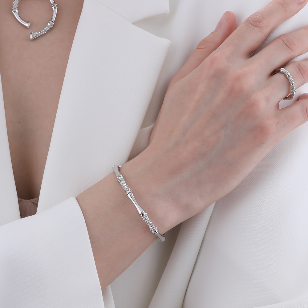 Браслет Бамбук (кристаллы белые; покрытие родий)