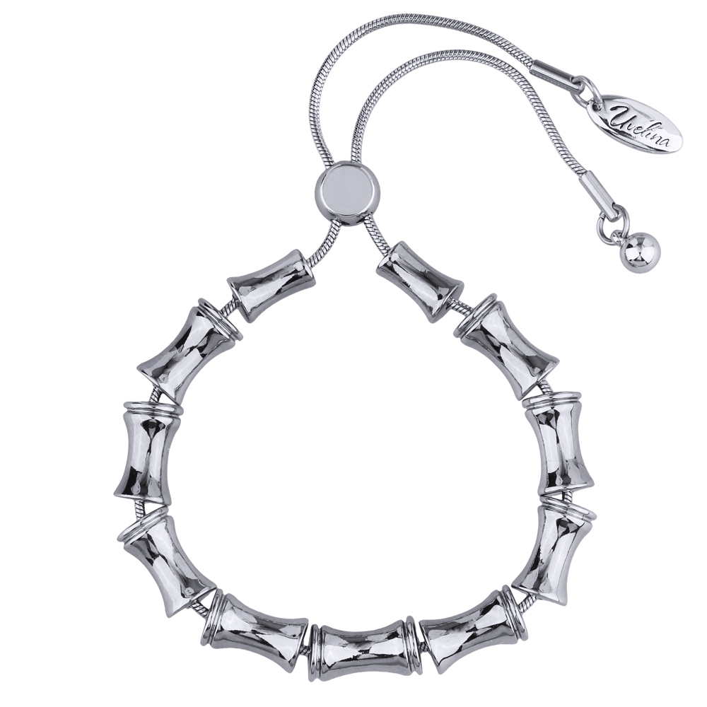 Описание: Изготовлено из ювелирного сплава на основе латуни с гальваническим покрытием родием. На браслете установлен регулятор длины. Максимальная длина 23см.