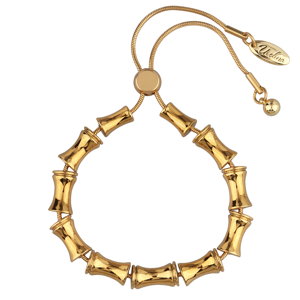 Описание: Изготовлено из ювелирного сплава на основе латуни с гальваническим покрытием золотом. На браслете установлен регулятор длины. Максимальная длина браслета 23см.