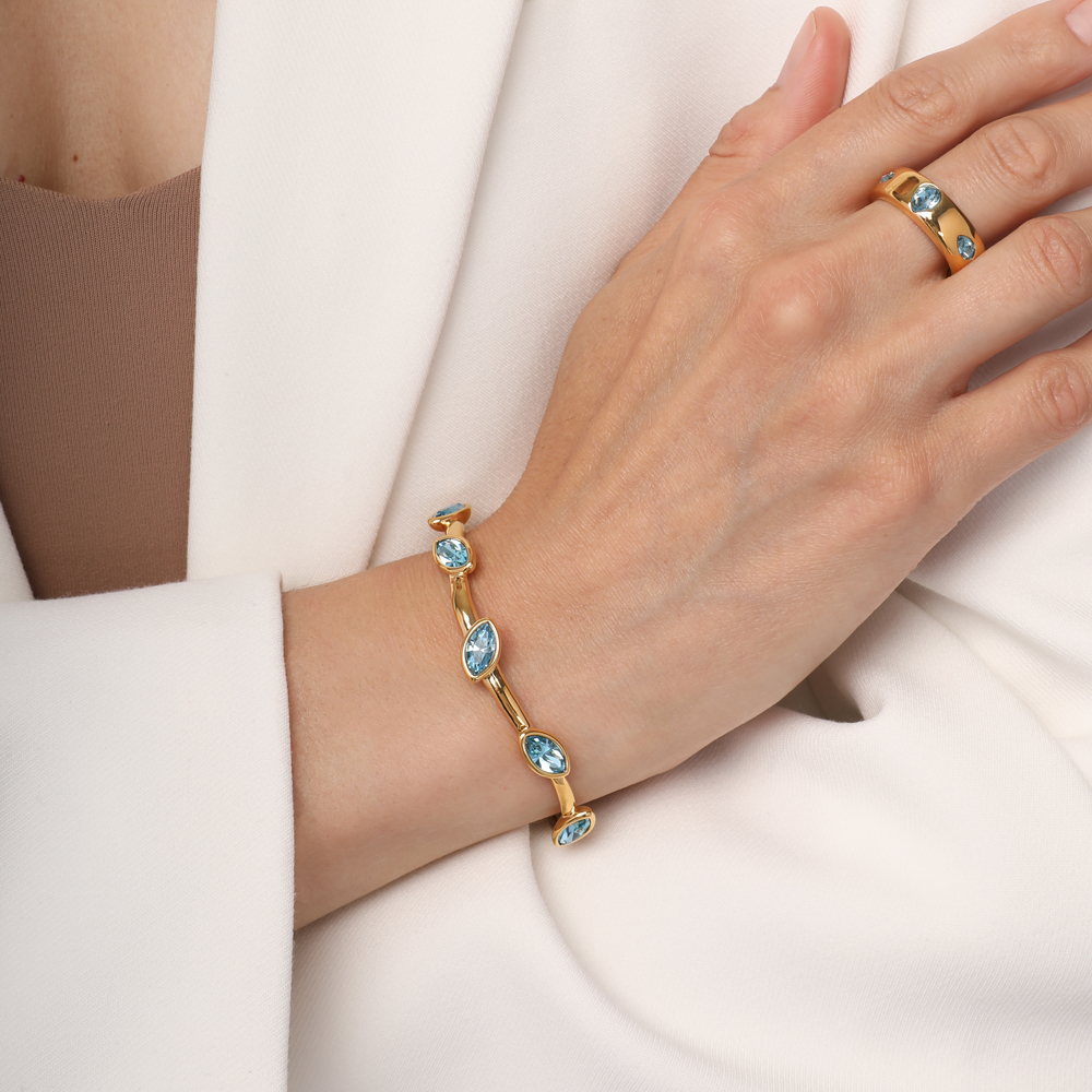 Браслет Эйва (кристаллы SW аквамарин; покрытие золото)