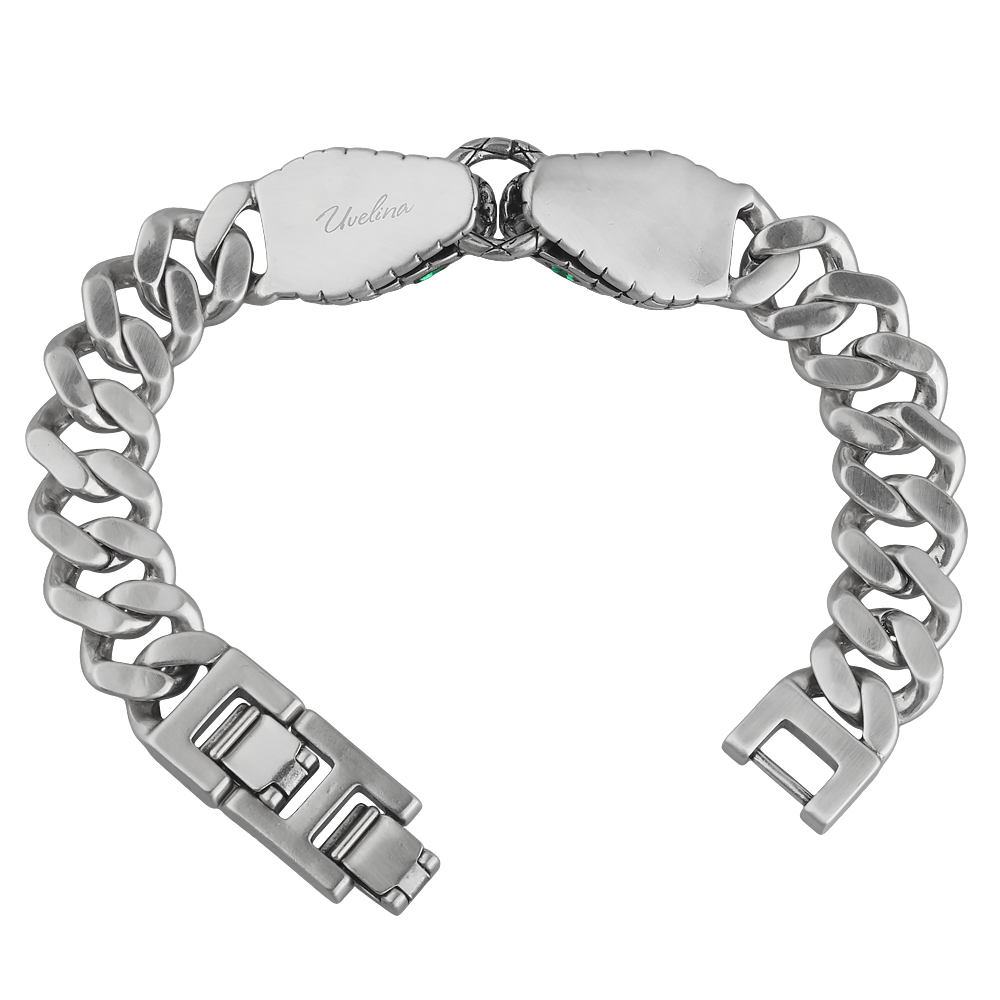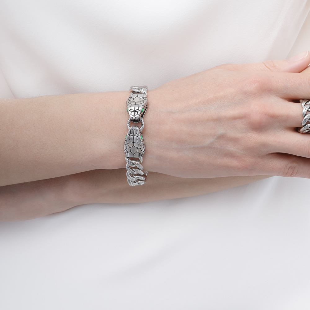 Описание: Изготовлено из ювелирного сплава на основе латуни с гальваническим покрытием античным серебром. Изделие украшают зеленые кристаллы. Длина 18-20см.