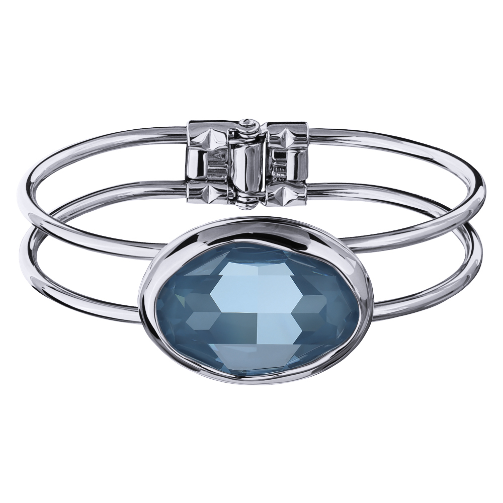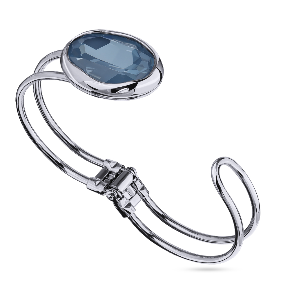 Описание: Изготовлено из ювелирного сплава на основе латуни с гальваническим покрытием родием. Изделие украшают кристаллы SW цвета байкальский лед. Размер кристалла 30х22мм. Размер браслета 6.2х4.5см.