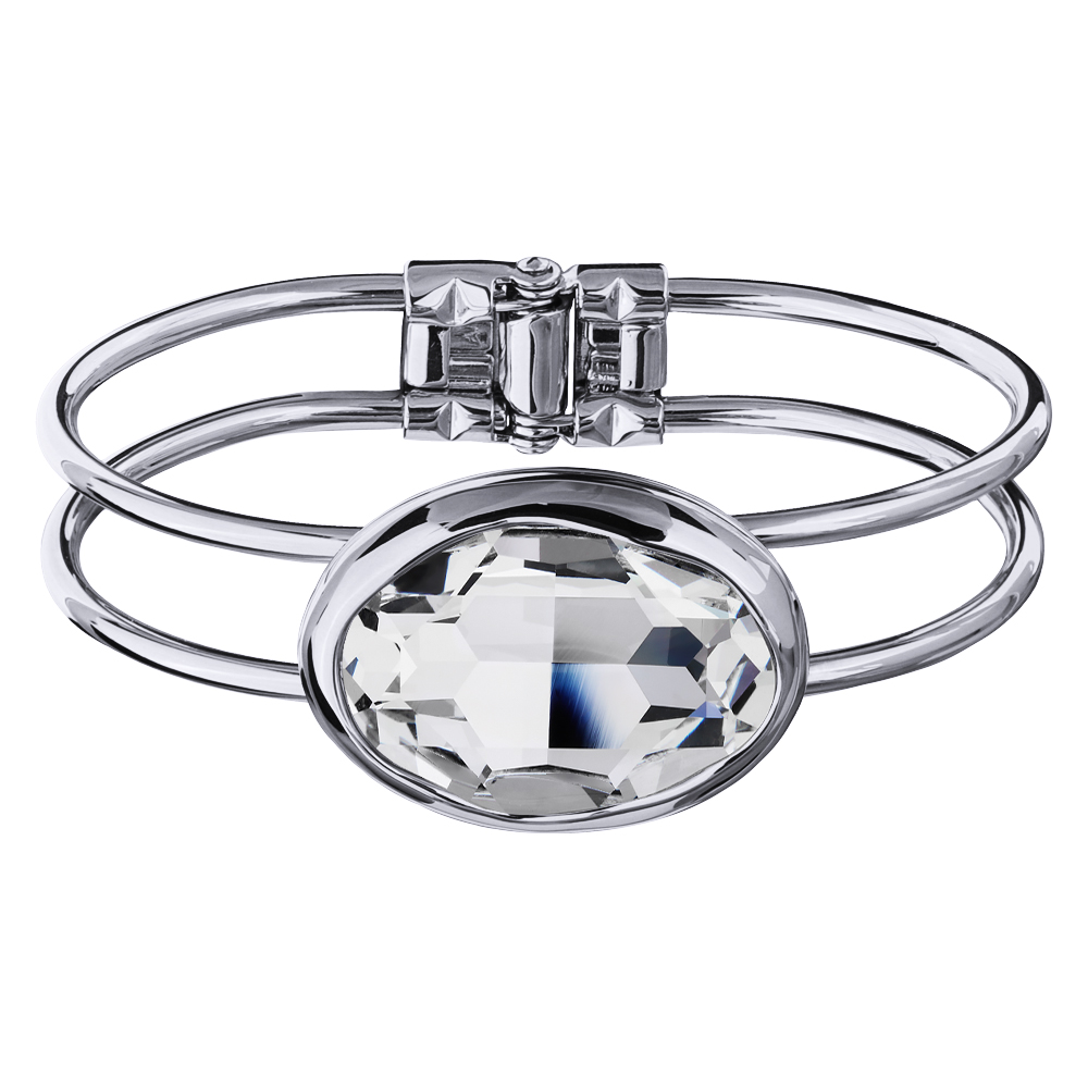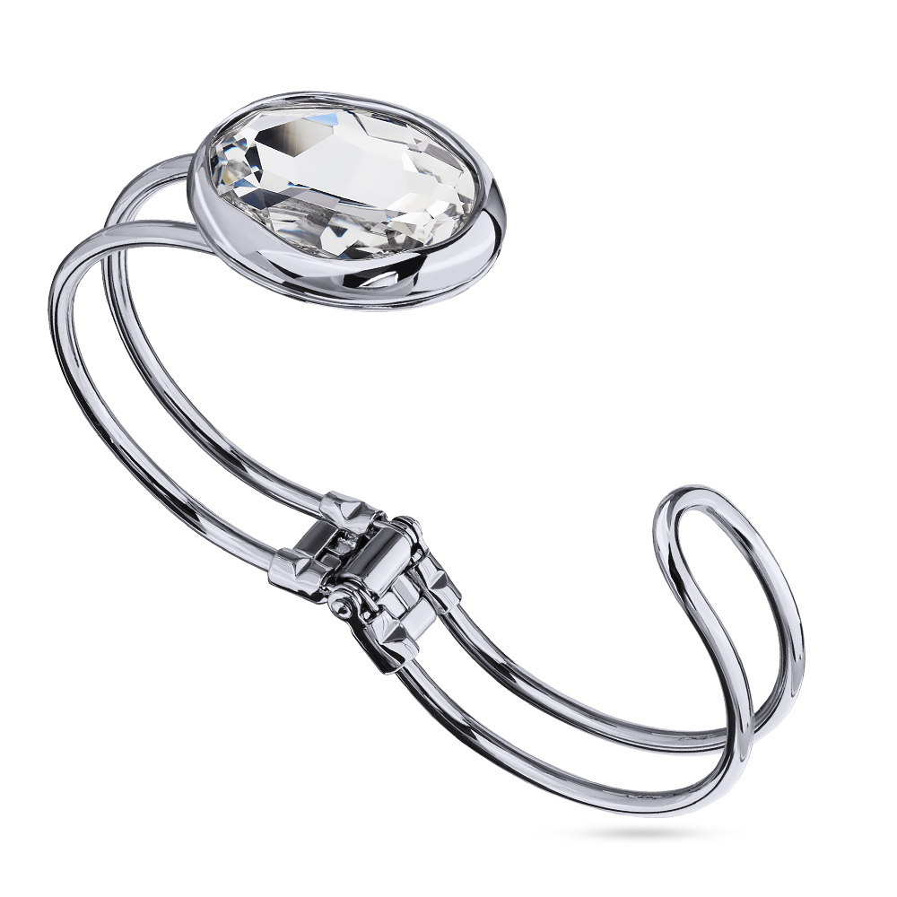 Описание: Изготовлено из ювелирного сплава на основе латуни с гальваническим покрытием родием. Изделие украшают кристаллы SW белого цвета. Размер кристалла 30х22мм. Размер браслета 6.2х4.5см.