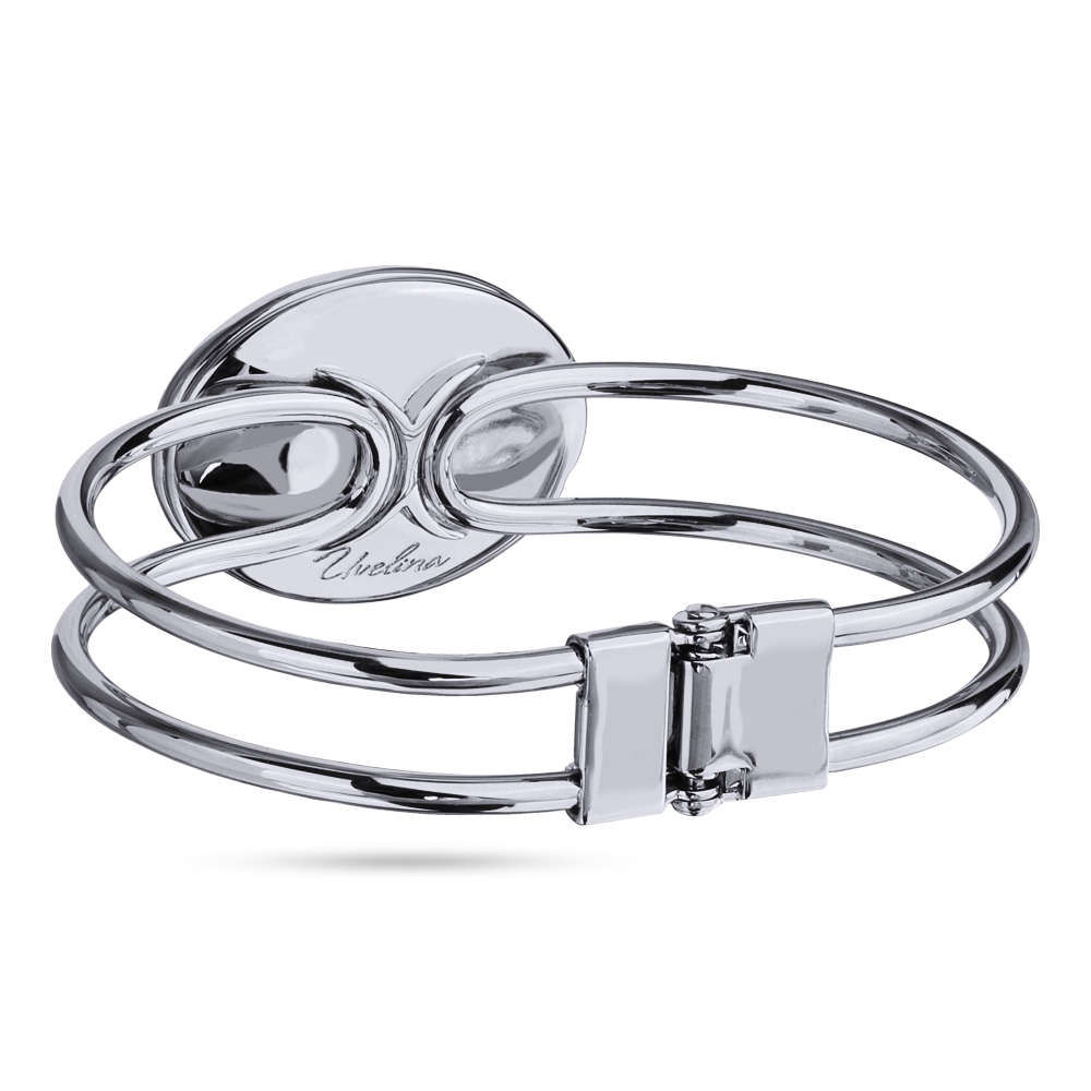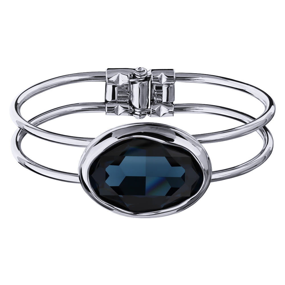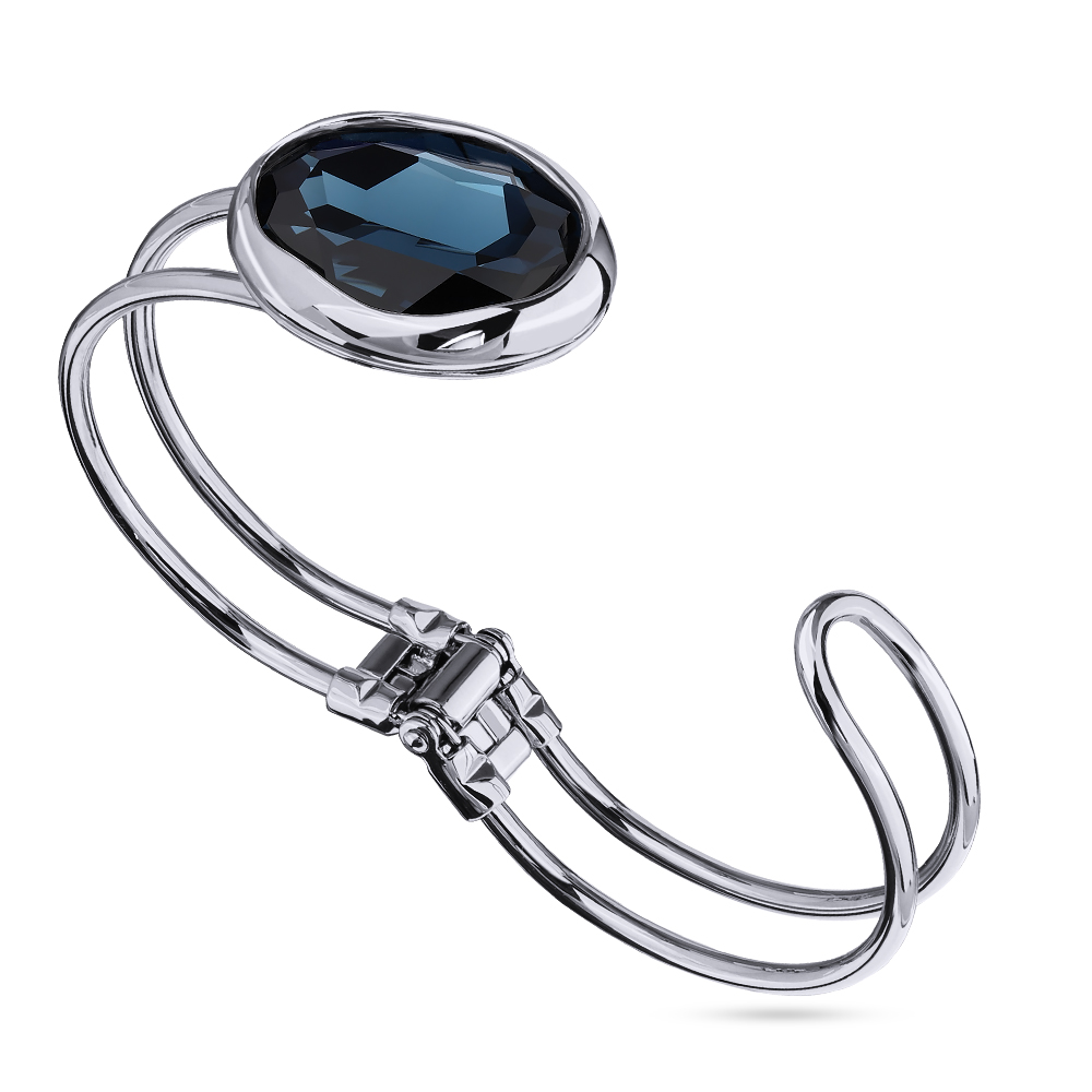 Описание: Изготовлено из ювелирного сплава на основе латуни с гальваническим покрытием родием. Изделие украшают кристаллы SW темно-синего цвета. Размер кристалла 30х22мм. Размер браслета 6.2х4.5см.
