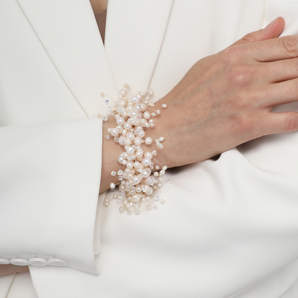 Вставка: жемчуг белый 3-7мм, кристаллы Сваровски белые хамелеон