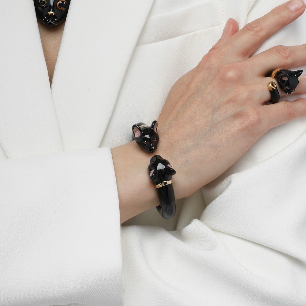 Браслет кошка женский купить (эмаль черная; покрытие золото) — интернет-магазин Uvelina