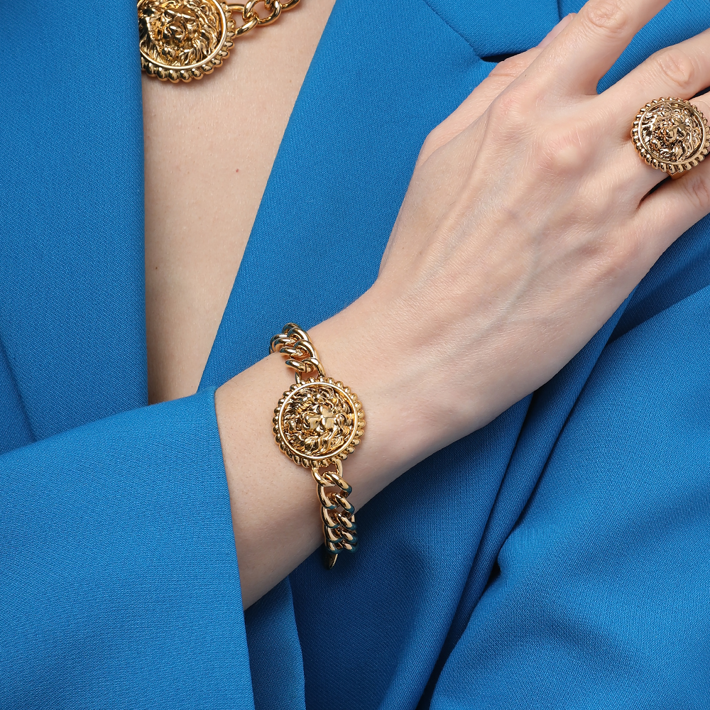 Описание: Изготовлено из ювелирного сплава на основе латуни с гальваническим покрытием золотом с патиной. Длина 18см. Замок-карабин с удлинителем 3см. Диаметр украшения 2, 5см.