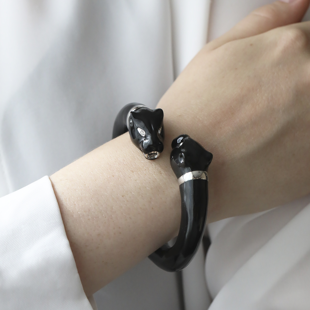 Браслет пантера (эмаль черная, кристаллы SW белые; покрытие родий)