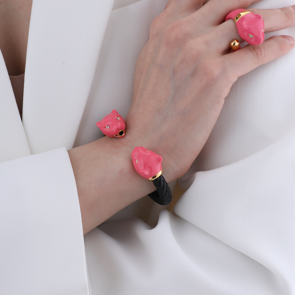Браслет пантера (эмаль фуксия, кристаллы SW белые; покрытие золото)