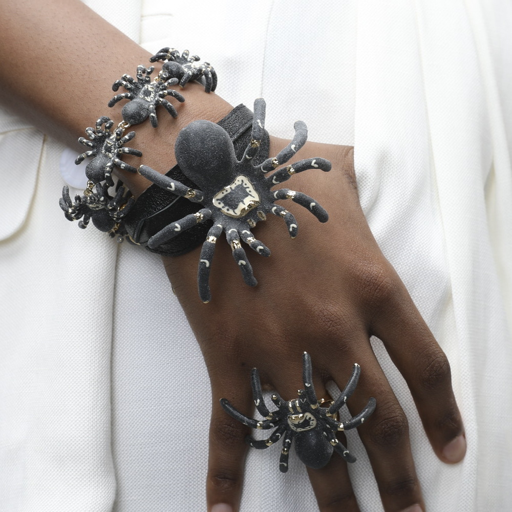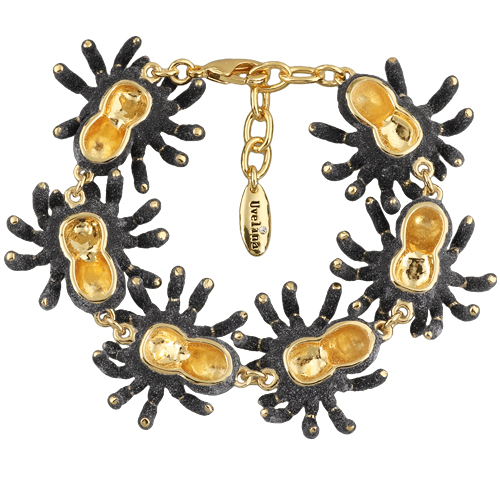 Описание: Изготовлено из ювелирного сплава на основе латуни с гальваническим покрытием золотом. Изделие украшает эмаль матового черного и белого цвета. Длина 18см. Замок-карабин с удлинителем 3см. Ширина 3см.