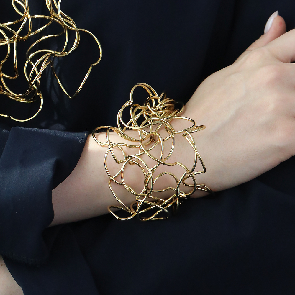 Описание: Изготовлено из ювелирного сплава на основе латуни с гальваническим покрытием золотом. Длина браслета 18см. Замок-карабин с удлинителем 5см.