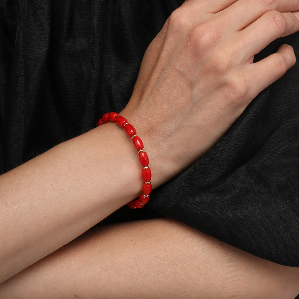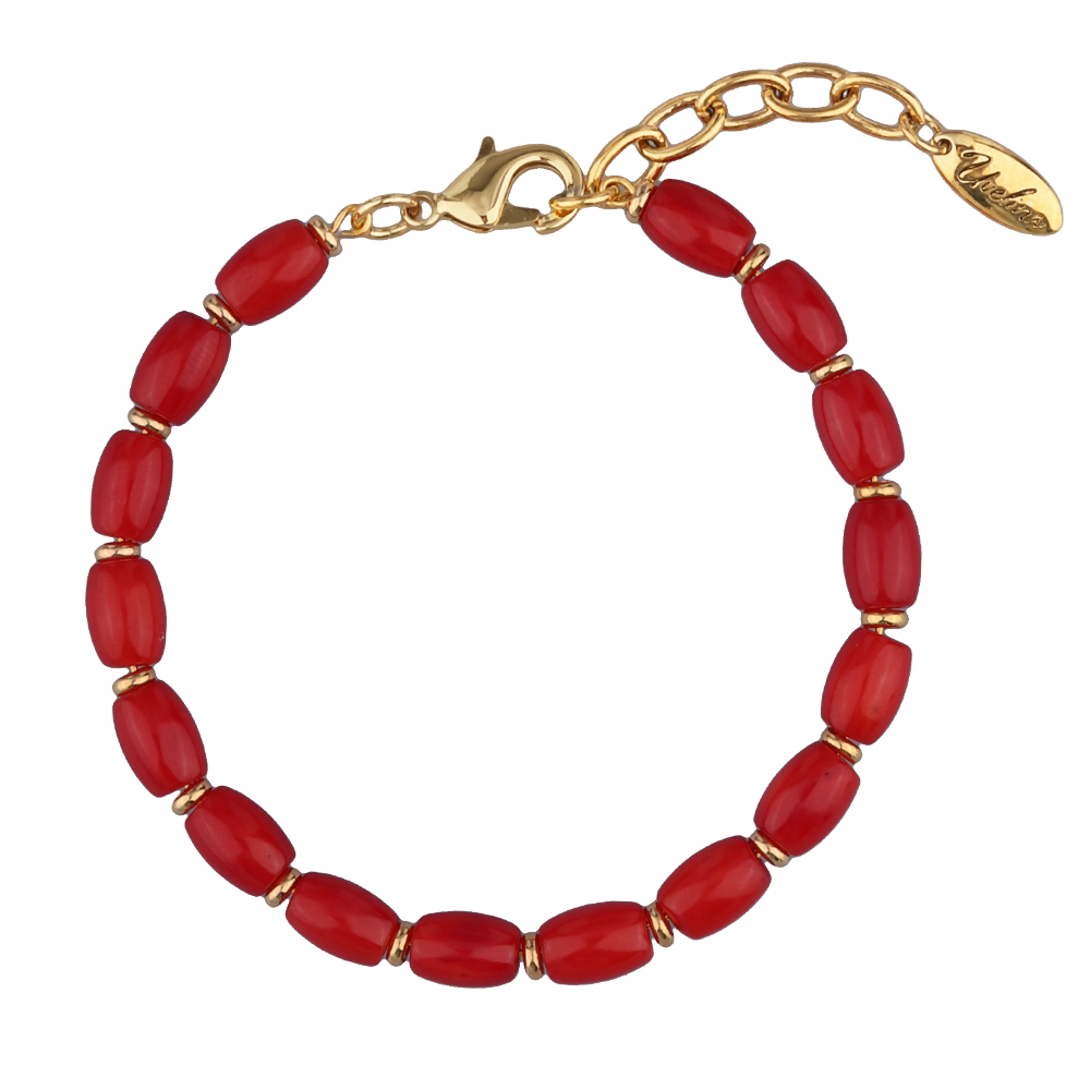 Описание: Изготовлено из ювелирного сплава на основе латуни с гальваническим покрытием золотом. Изделие украшает натуральный корал диаметром 8мм. Длина 19см. Замок-карабин с удлинителем 3см.