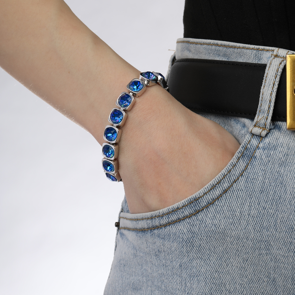 Браслет Теннис (кристаллы SW королевский синий 8мм; покрытие родий) 17-19см