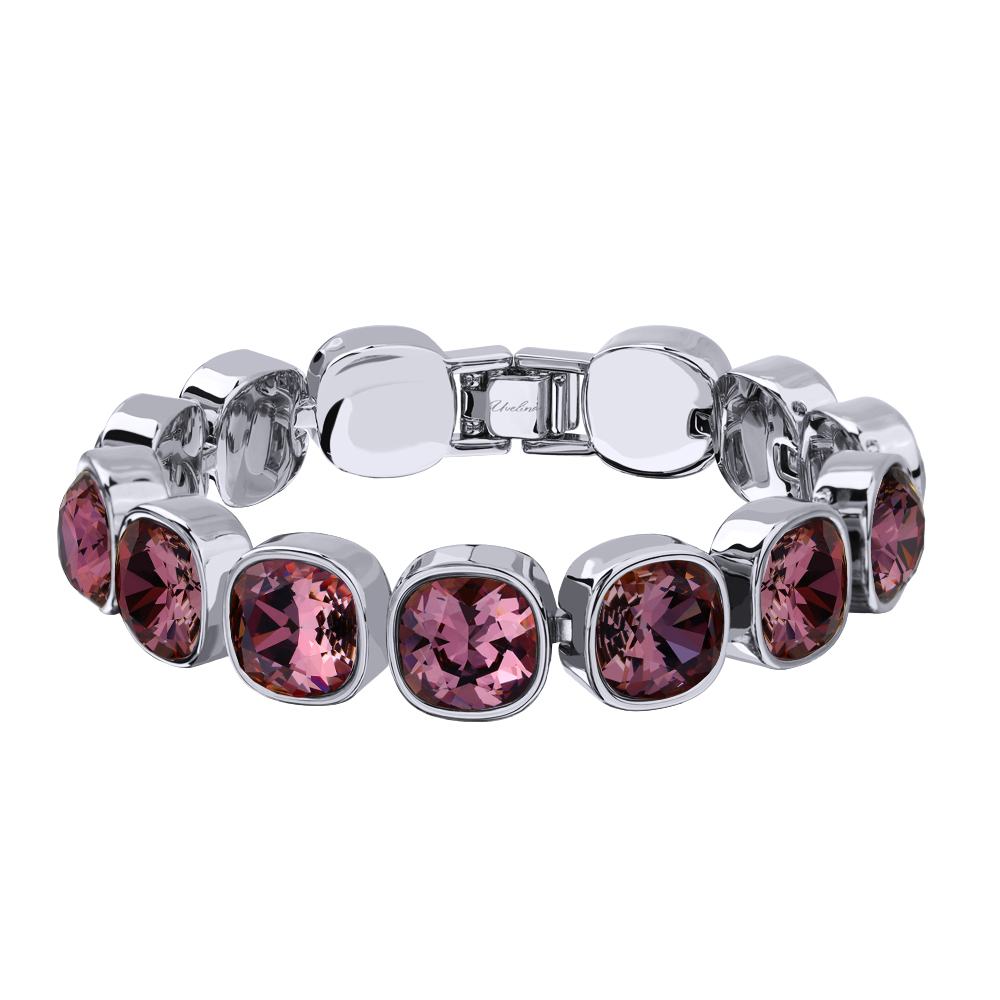 Описание: Изготовлено из ювелирного сплава на основе латуни с гальваническим покрытием родием. Изделие украшают кристаллы SW цвета бургунди диаметром 10мм. Длина 17-20см.