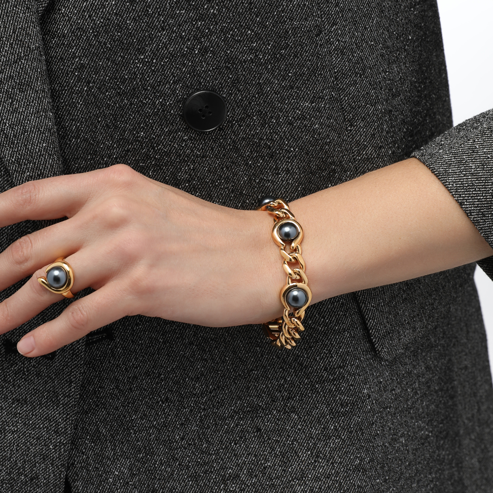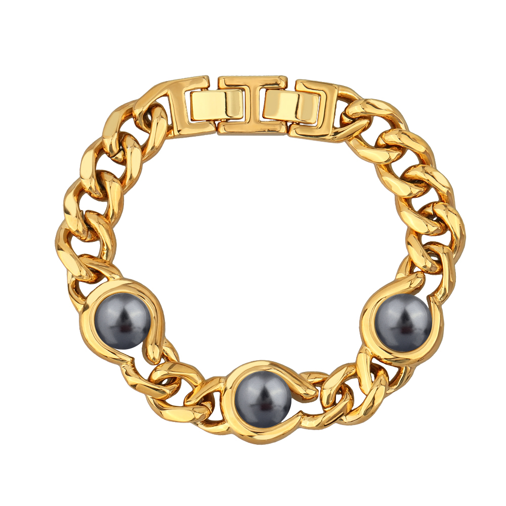 Браслет Знаки (Майорка темно-серая 12мм; покрытие золото) 18-20см