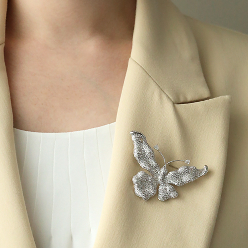 Описание: Изготовлено из ювелирного сплава на основе латуни с гальваническим покрытием родием. Изделие украшает белый фианит Размер 7х5см. Замок-английская булавка.