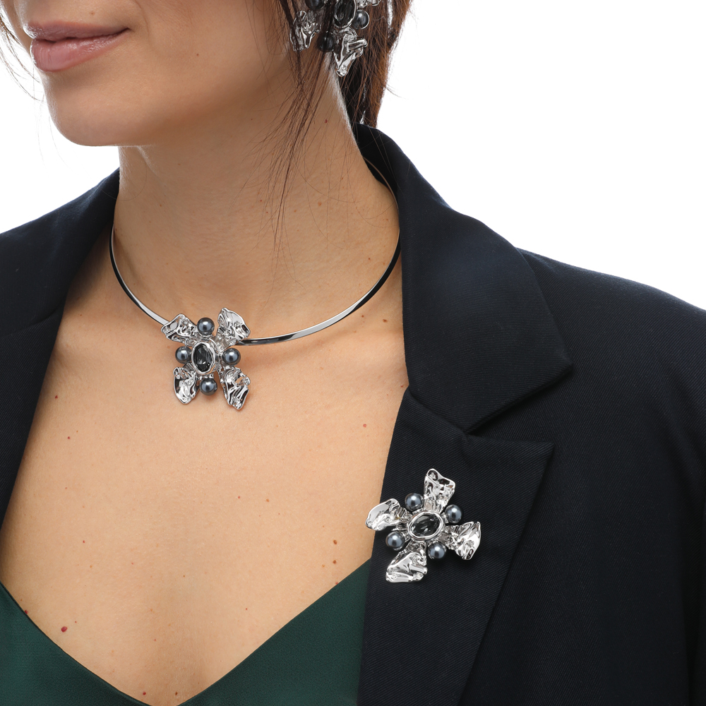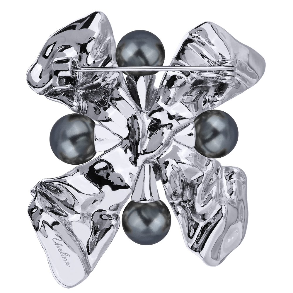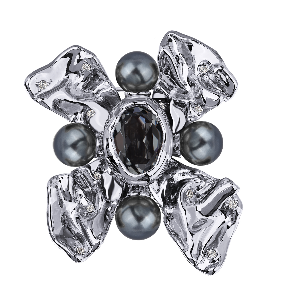 Брошь Грациоза (кристаллы SW темно-серые, Майорка; покрытие родий)