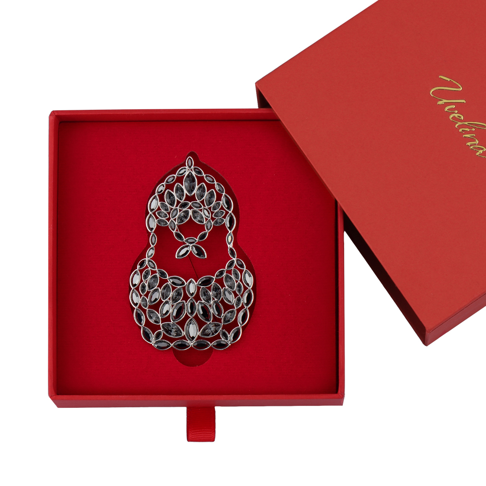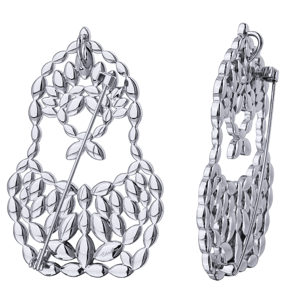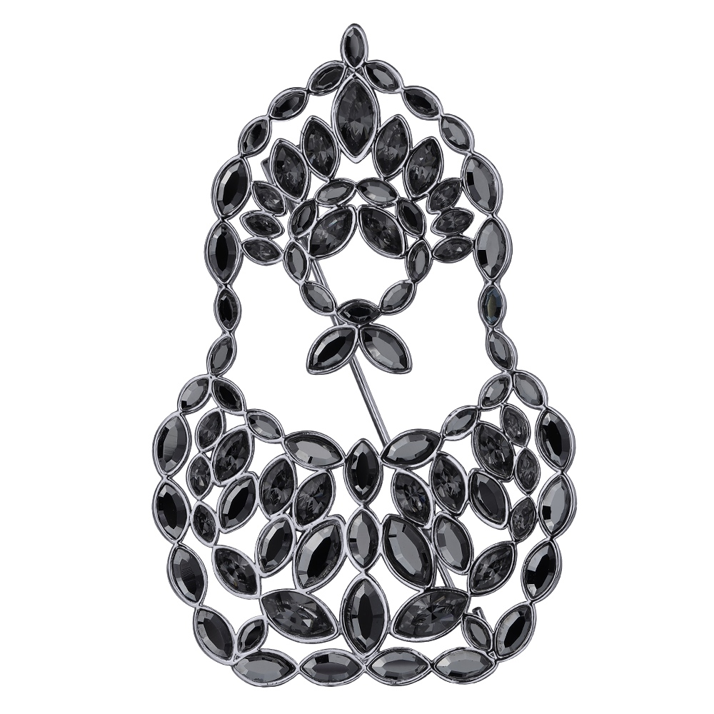 Описание: Изготовлено из ювелирного сплава на основе латуни с гальваническим покрытием родием. Изделие украшают кристаллы SW темно-серого и гематит цвета. Размер броши 7.5х4.5см. Замок-булавка.