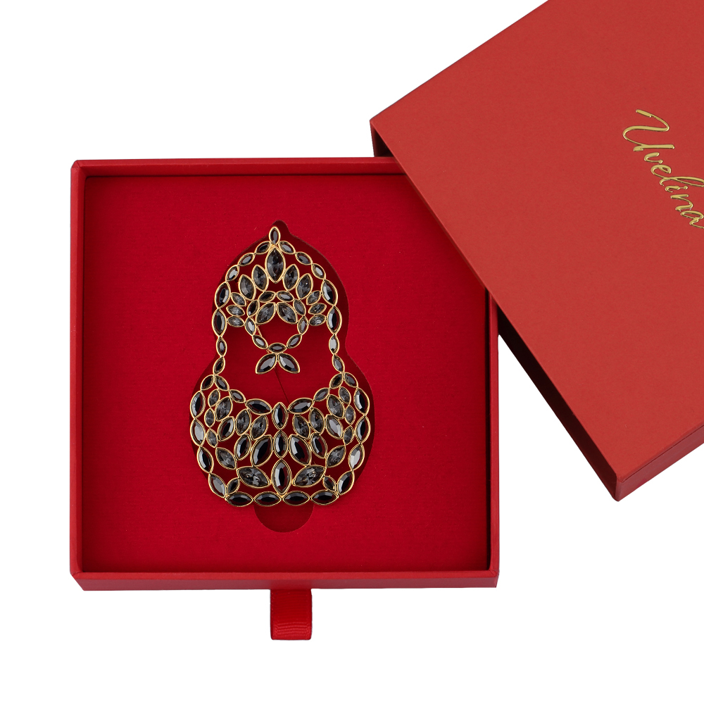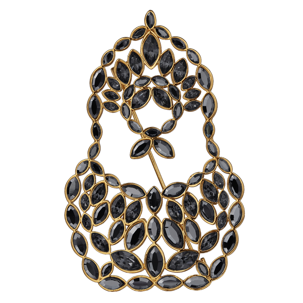 Брошь Матрешка (кристаллы SW темно-серые, гематит; покрытие золото)