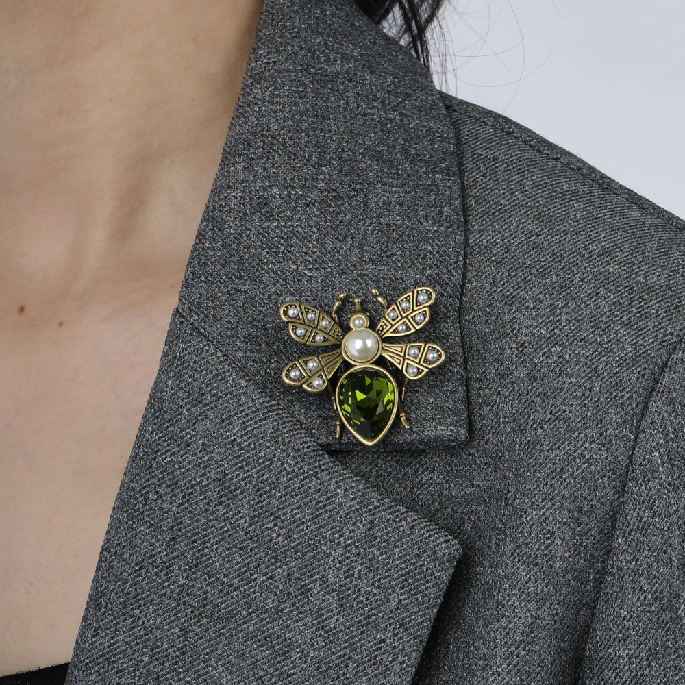 Описание: Изготовлено из ювелирного сплава на основе латуни с гальваническим покрытием бронзой. Изделие украшают кристаллы SW зеленого цвета и белый майорский жемчуг диаметром 8мм. Размер украшения 4х4см. Застежка-булавка.
