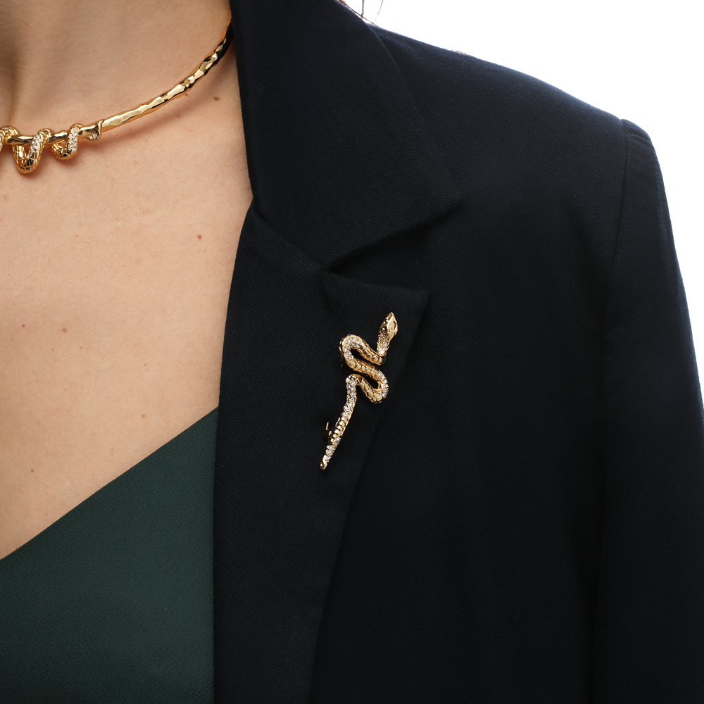 Описание: Изготовлено из ювелирного сплава на основе латуни с гальваническим покрытием золотом. Изделие украшают белые кристаллы SW. Размер украшения 6х2.5см.