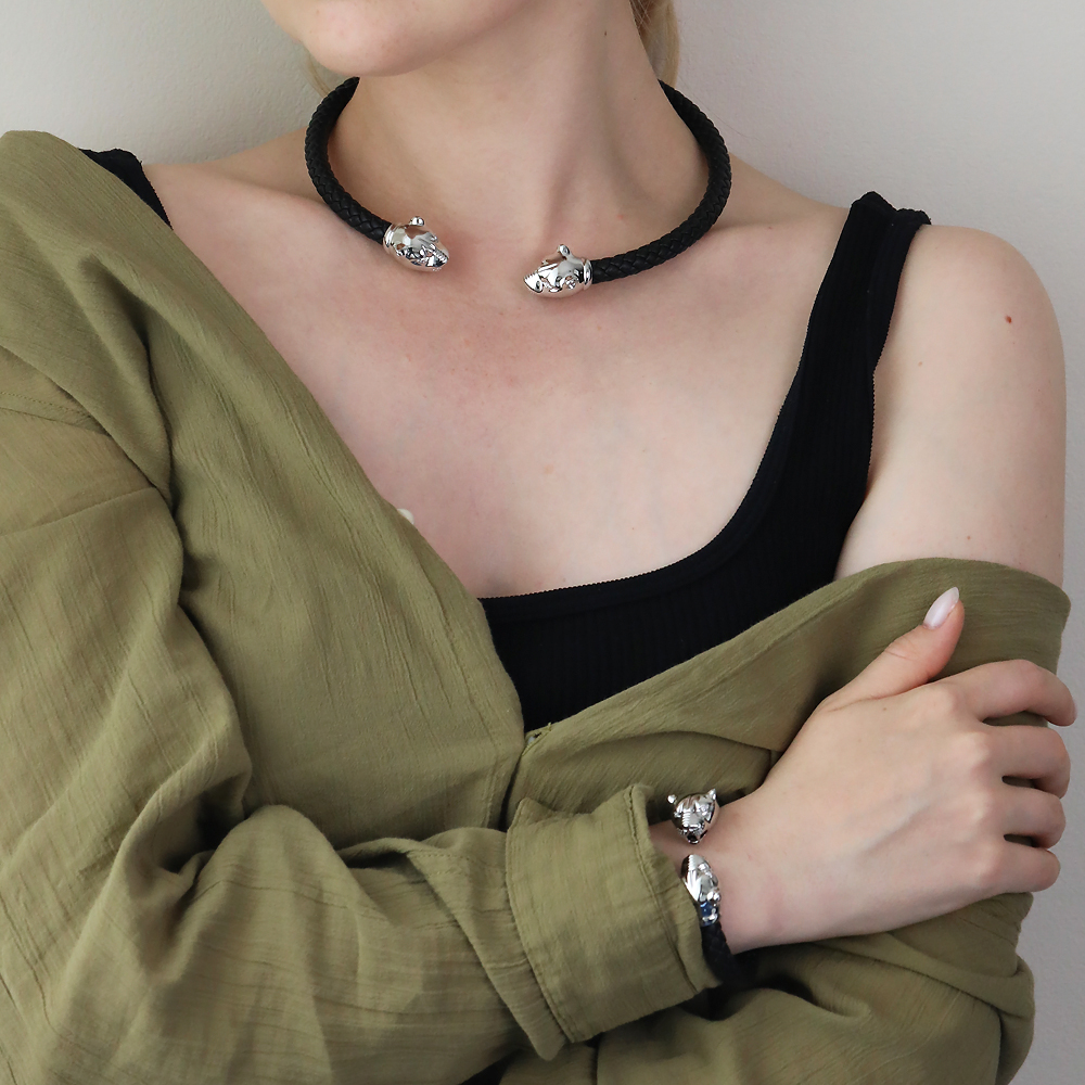 Чокер пантера (кристаллы SW белые, натуральная кожа; покрытие родий)