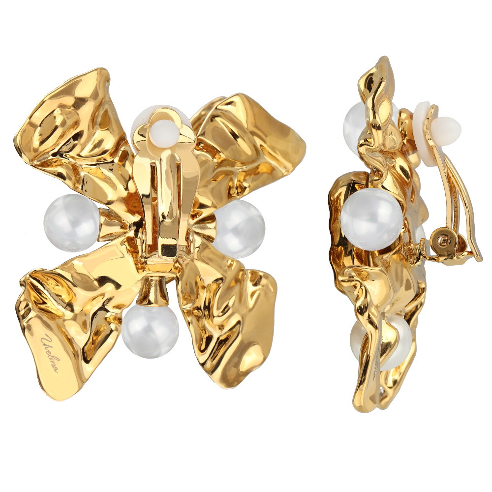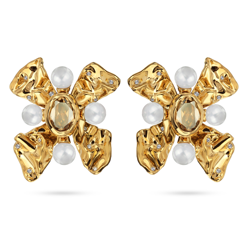 Клипсы Грациоза (кристаллы SW шампань, Майорка белая; покрытие золото)