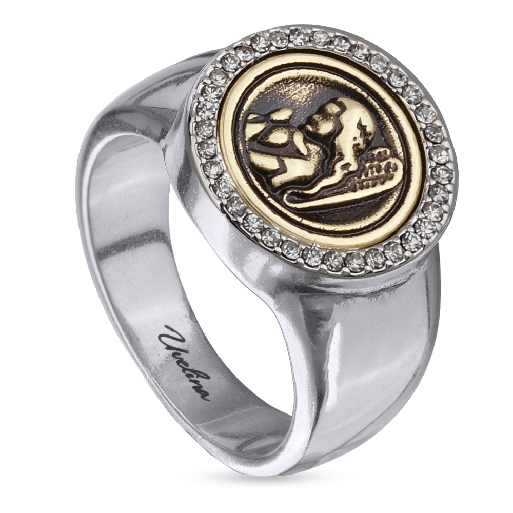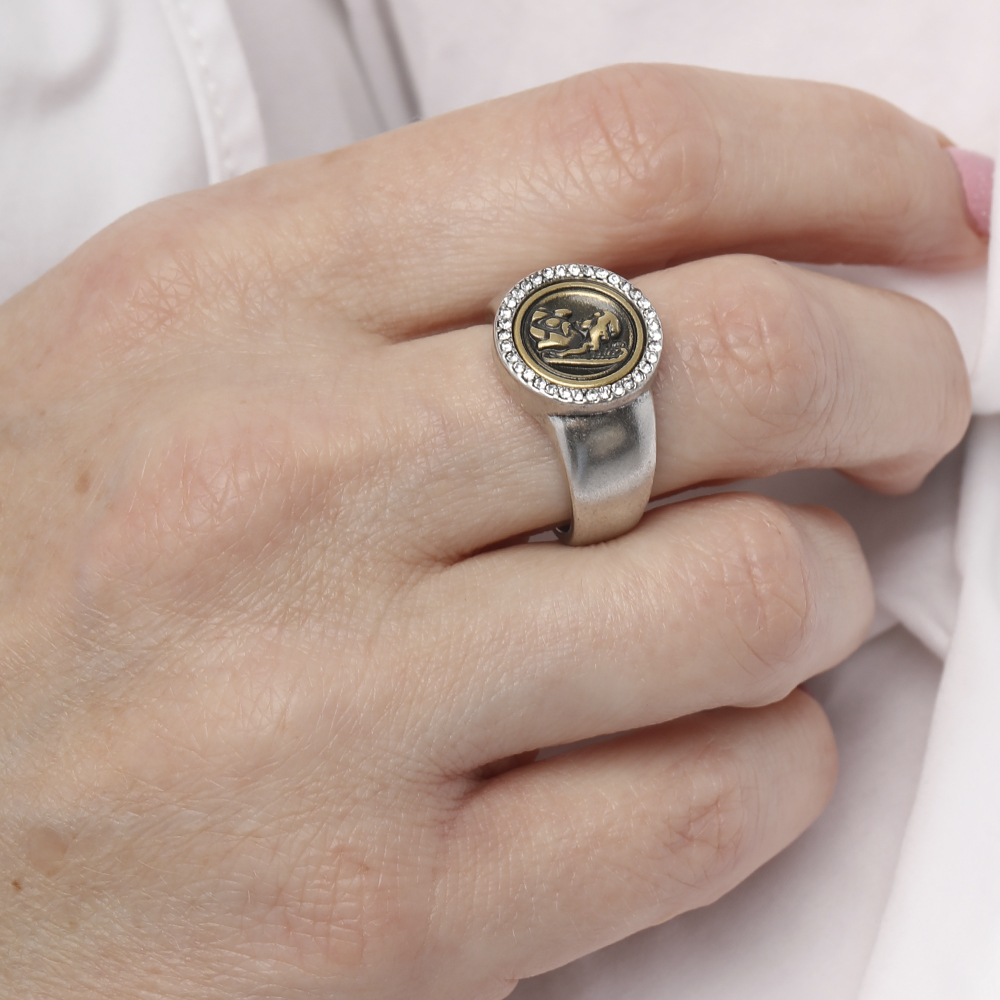 Описание: Изготовлено из ювелирного сплава на основе латуни с гальваническим покрытием античным серебром и античным золотом. Изделие украшают кристаллы SW белого цвета. Диаметр украшения 11мм.