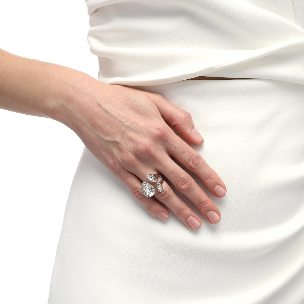 Описание: Изготовлено из ювелирного сплава на основе латуни с гальваническим покрытием родием. Изделие украшают кристаллы SW белого цвета.