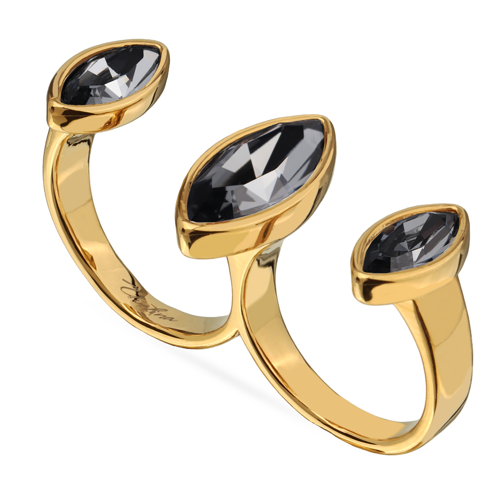 Описание: Изготовлено из ювелирного сплава на основе латуни с гальваническим покрытием золотом. Изделие украшают кристаллы SW темно-серого цвета. * Возможна регулировка размера.