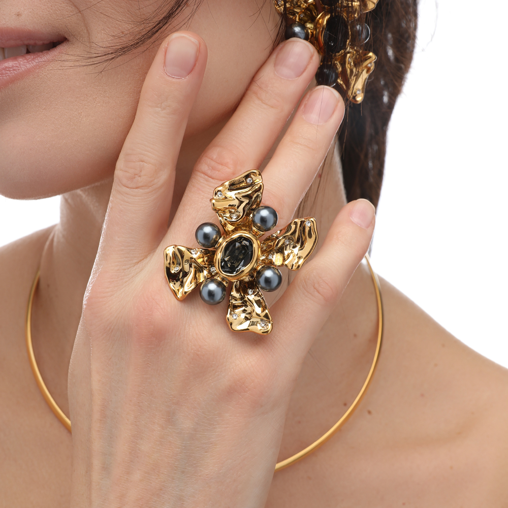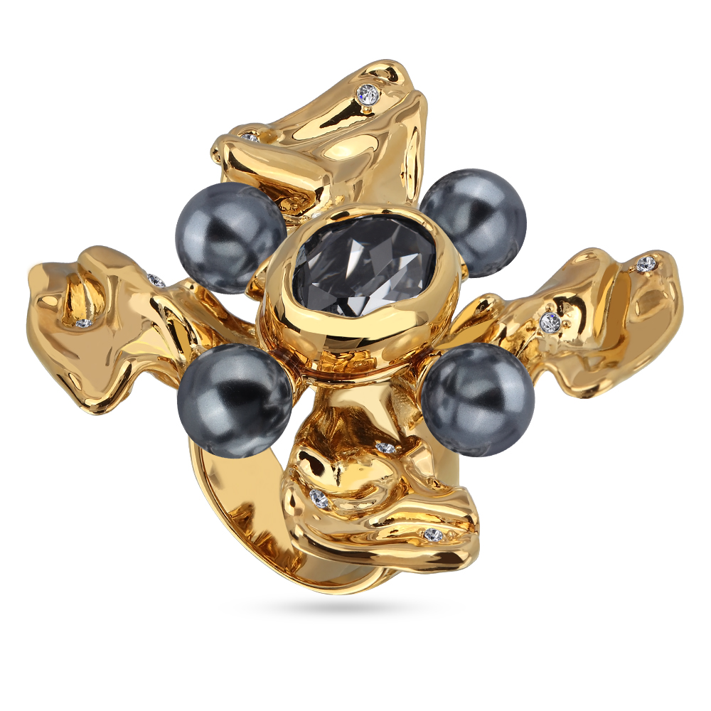 Кольцо Грациоза (кристаллы SW темно-серые, Майорка; покрытие золото)