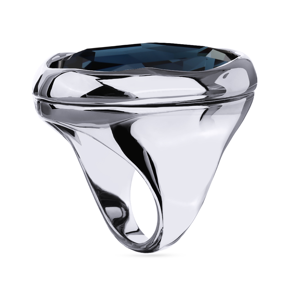 Описание: Изготовлено из ювелирного сплава на основе латуни с гальваническим покрытием родием. Изделие украшают кристаллы SW темно-синего цвета. Размер кристалла 30х22мм.