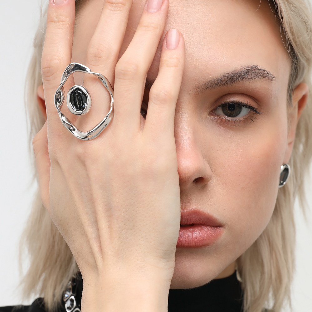 Описание: Изготовлено из ювелирного сплава на основе латуни с гальваническим покрытием родием. Изделие украшают кристаллы SW темно-серого цвета. Размер украшения 3, 5х4см.
