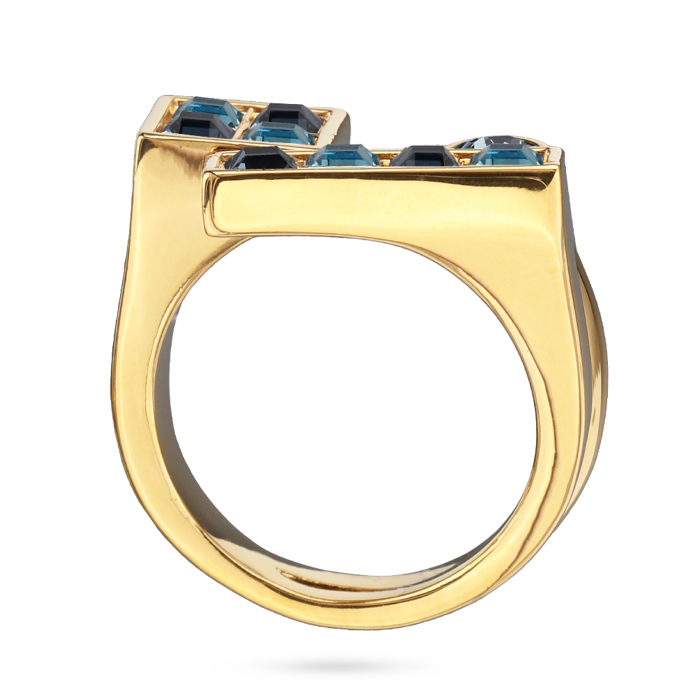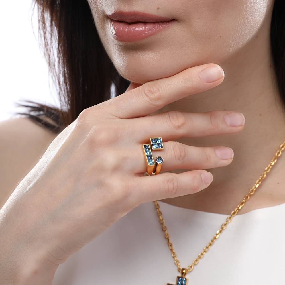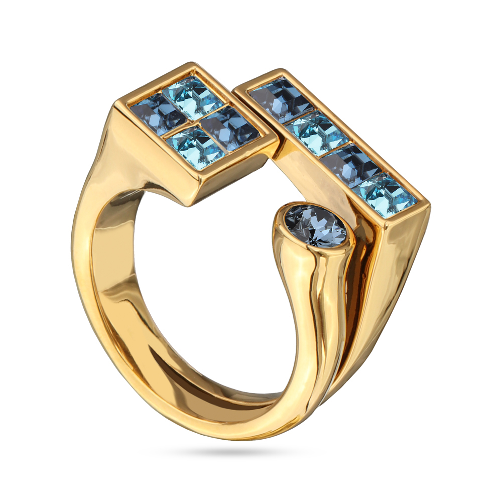 Описание: Изготовлено из ювелирного сплава на основе латуни с гальваническим покрытием золотом. Изделие украшают кристаллы SW цвета джинс и аквамарин диаметром 3мм.