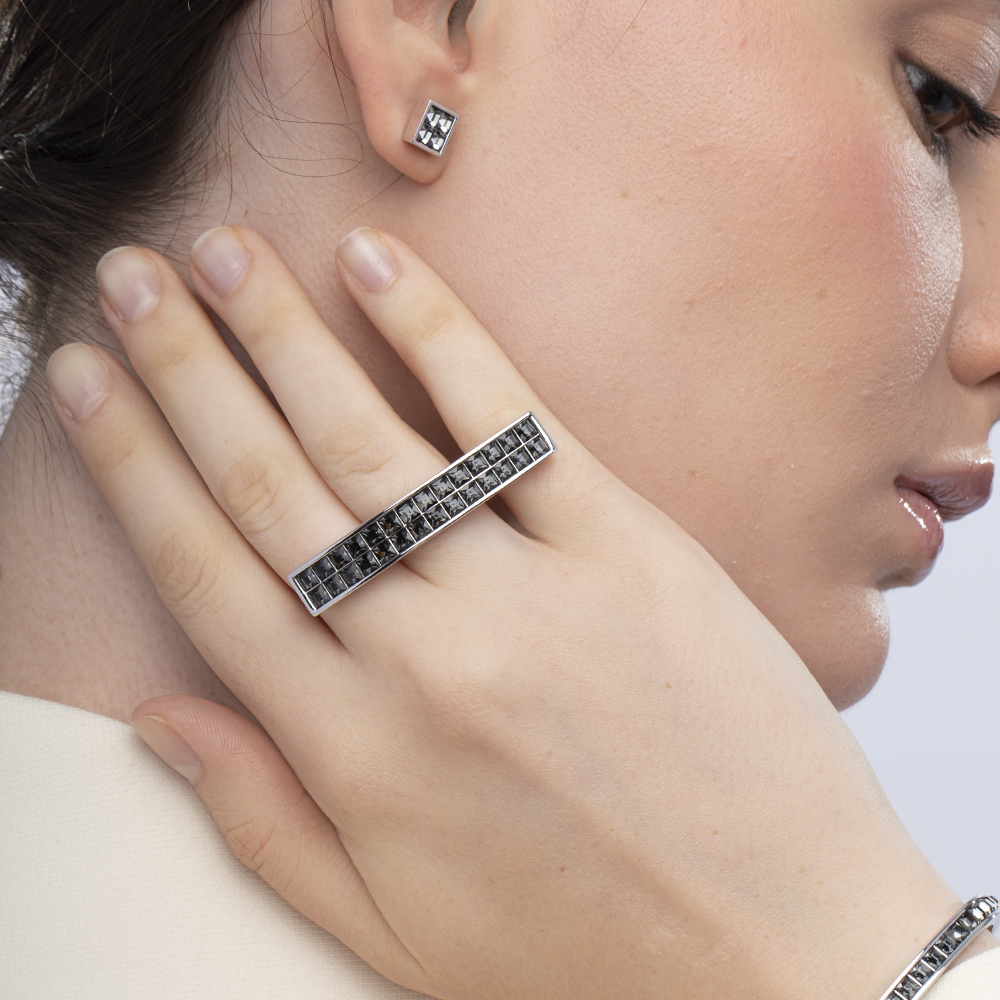 Описание: Изготовлено из ювелирного сплава на основе латуни с гальваническим покрытием родием. Изделие украшают кристаллы SW темно-серого цвета диаметром 3мм.