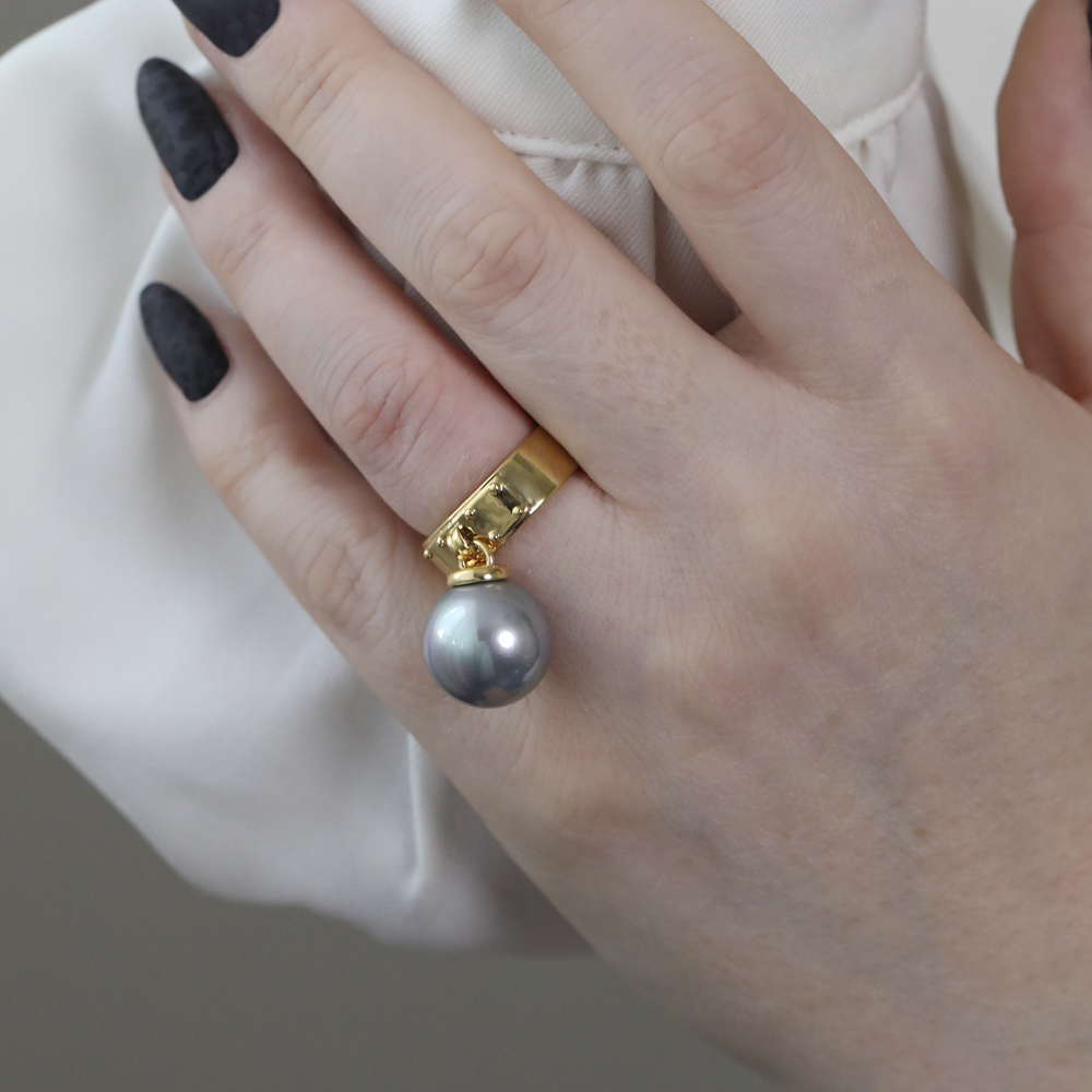 Описание: Изготовлено из ювелирного сплава на основе латуни с гальваническим покрытием золотом. Изделие украшает майорский круглый жемчуг серо-голубого цвета диаметром 14мм.