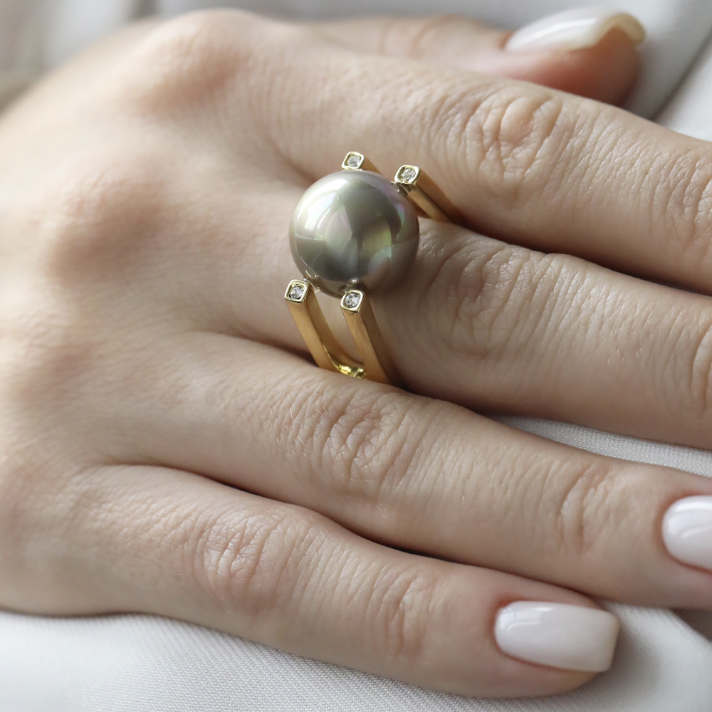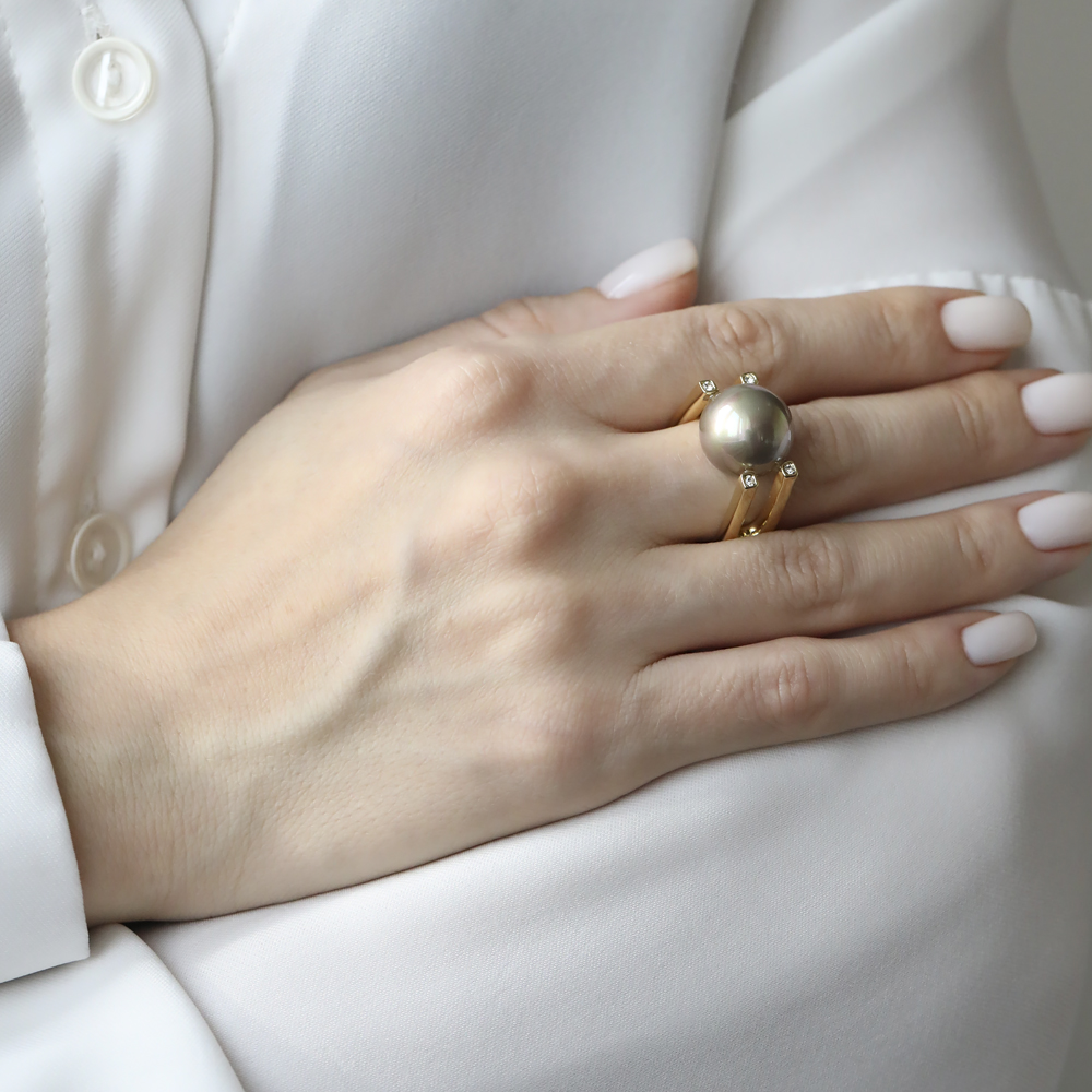 Описание: Изготовлено из ювелирного сплава на основе латуни с гальваническим покрытием золотом. Изделие украшают майорский круглый жемчуг серо-коричневого цвета диаметром 14мм и кубики циркония.