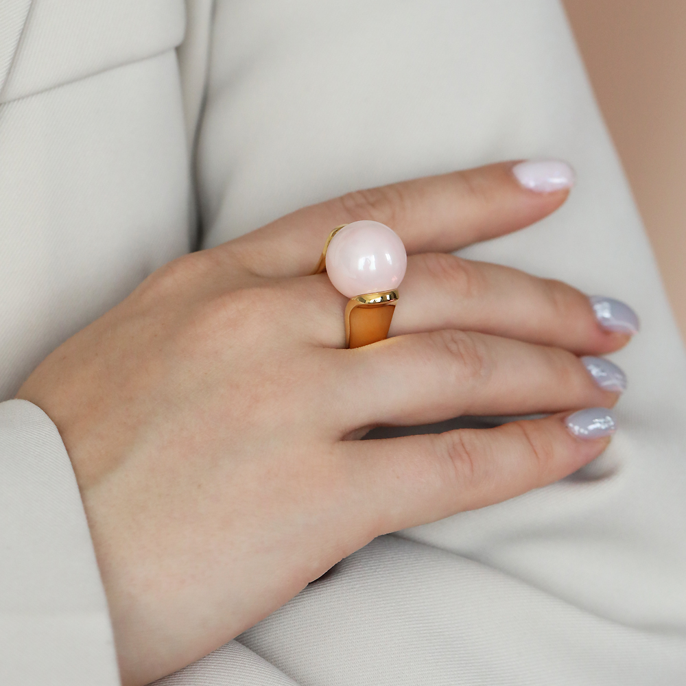 Описание: Изготовлено из ювелирного сплава на основе латуни с гальваническим покрытием золотом. Изделие украшает майорский круглый жемчуг холодно-розового цвета диаметром 16мм.