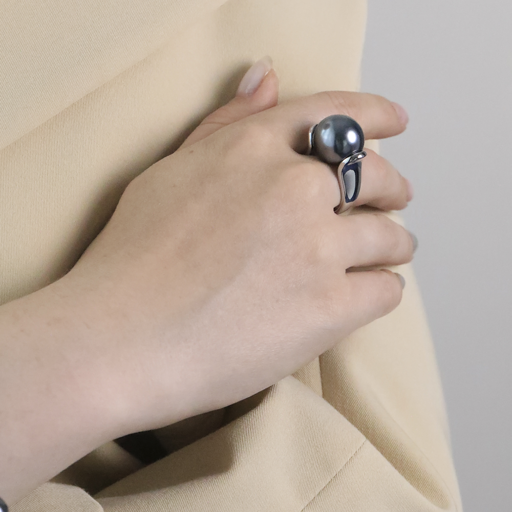 Описание: Изготовлено из ювелирного сплава на основе латуни с гальваническим покрытием родием. Изделие украшает круглый жемчуг Майорка темно-серого цвета диаметром 16мм.