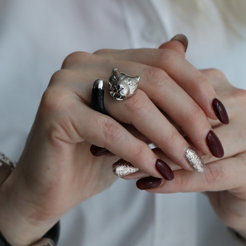 Описание: Изготовлено из ювелирного сплава на основе латуни с гальваническим покрытием родием. Изделие покрыто эмалью черного цвета и украшено белыми кристаллами SW. Размер украшения 2х2.5см.