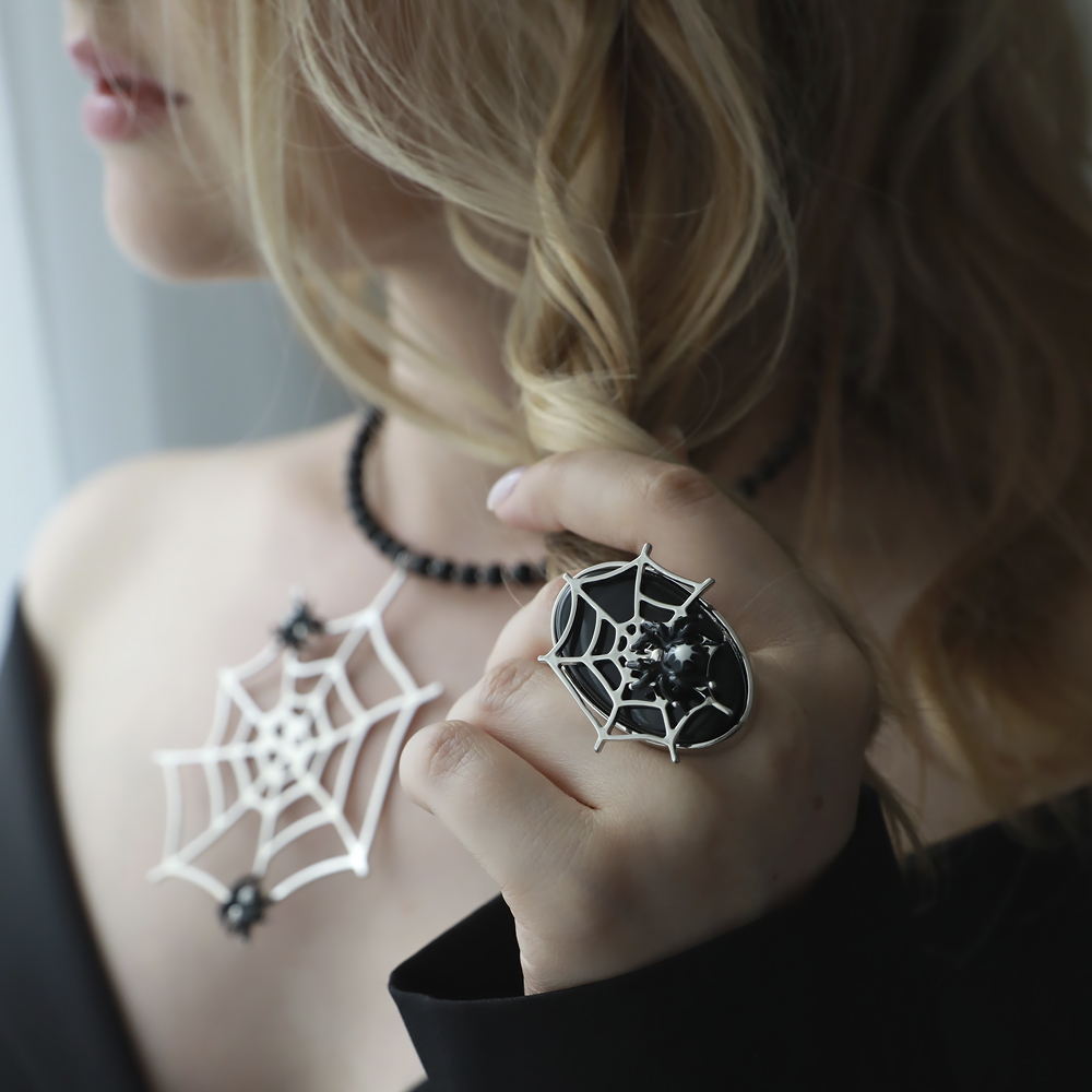 Описание: Изготовлено из ювелирного сплава на основе латуни с гальваническим покрытием родием. Изделие расписано ювелирной краской черного и белого цвета и покрыто эмалью. Размер украшения 4х3см. Безразмерное.