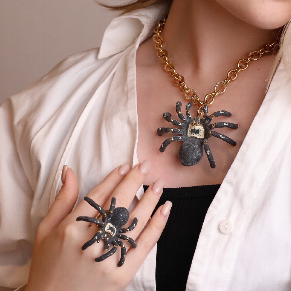Описание: Изготовлено из ювелирного сплава на основе латуни с гальваническим покрытием золотом. Изделие украшает эмаль матового черного и белого цвета. Размер украшения 6х5см. Безразмерное.