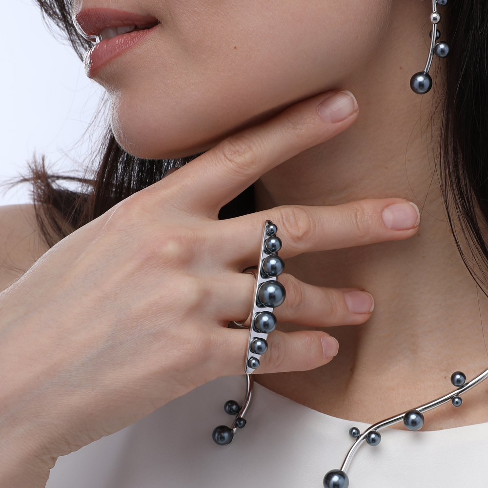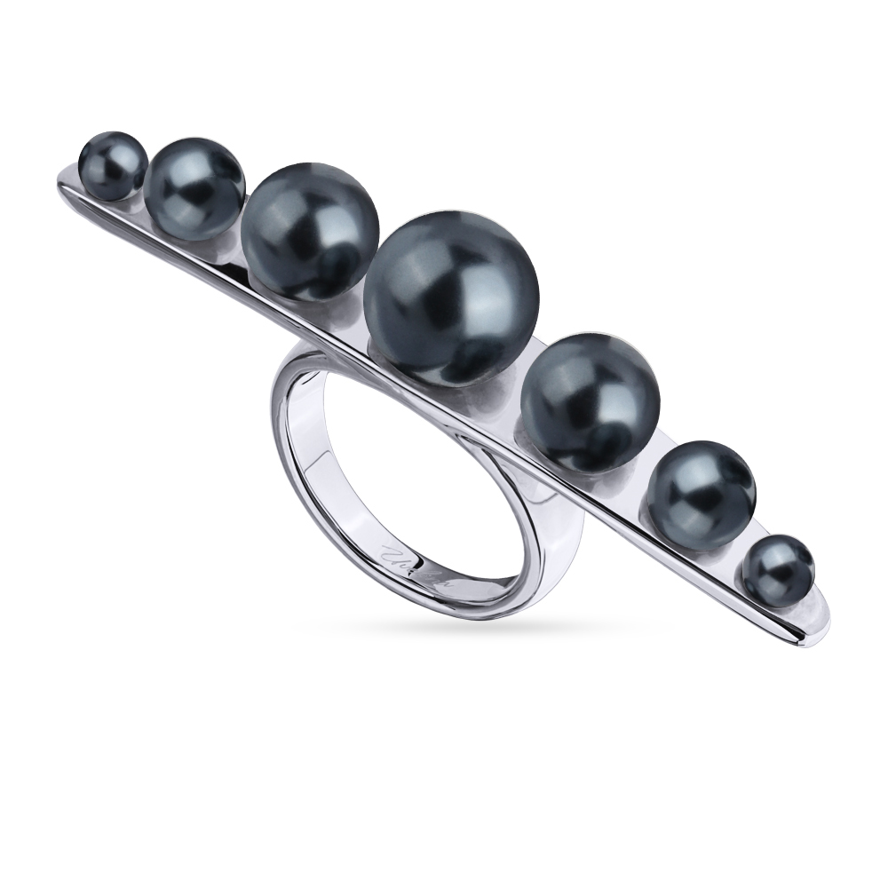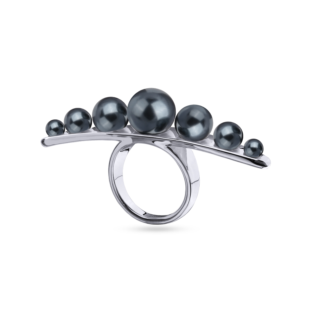 Описание: Изготовлено из ювелирного сплава на основе латуни с гальваническим покрытием родием. Изделие украшает майорский круглый жемчуг темно-серого цвета диаметром мм.
