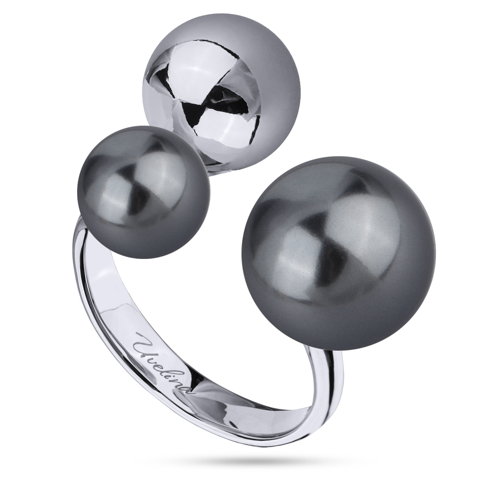 Кольцо Просекко (Майорка 8-12 мм темно-серая; покрытие родий)