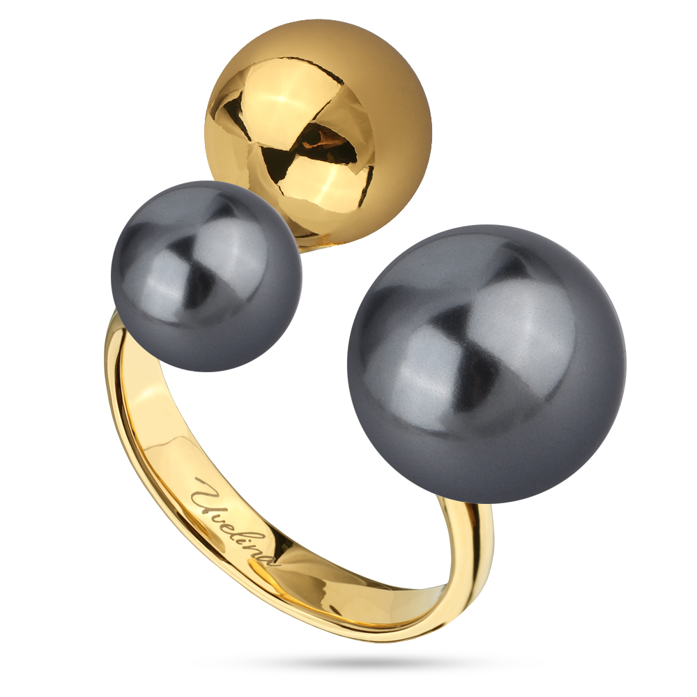 Описание: Изготовлено из ювелирного сплава на основе латуни с гальваническим покрытием золотом. Изделие украшает майорский круглый жемчуг темно-серого цвета диаметром 8 и 12мм. Безразмерное.