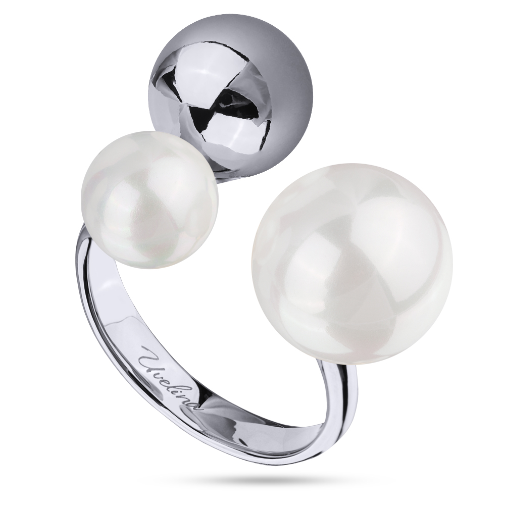 Кольцо Просекко (Майорка 8-12мм белая; покрытие родий)