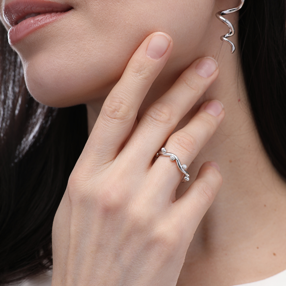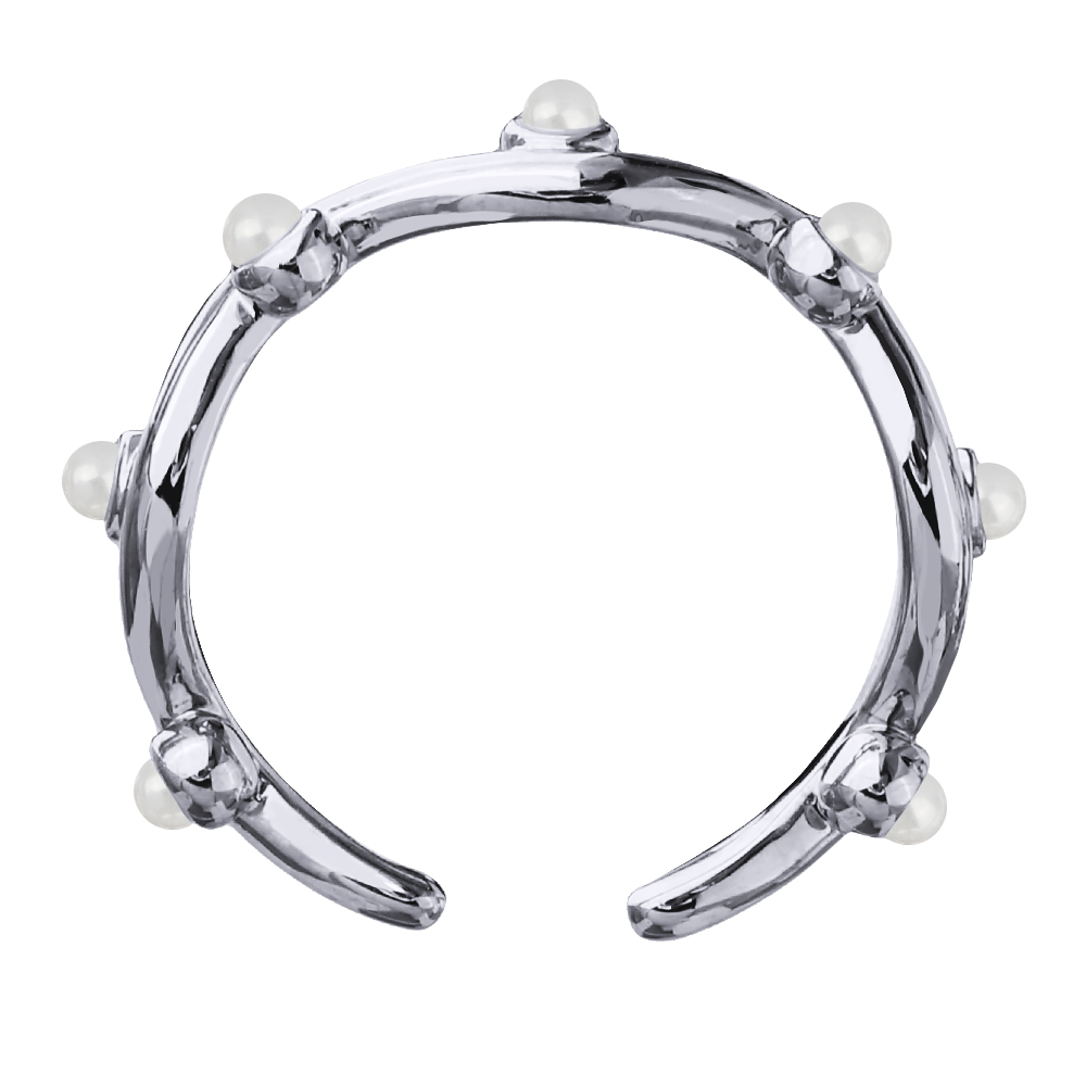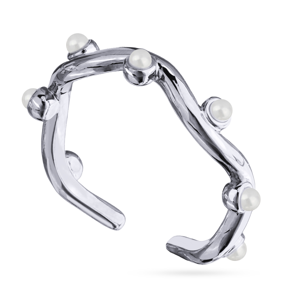Описание: Изготовлено из ювелирного сплава на основе латуни с гальваническим покрытием родием. Изделие украшает жемчуг Майорка белого цвета.