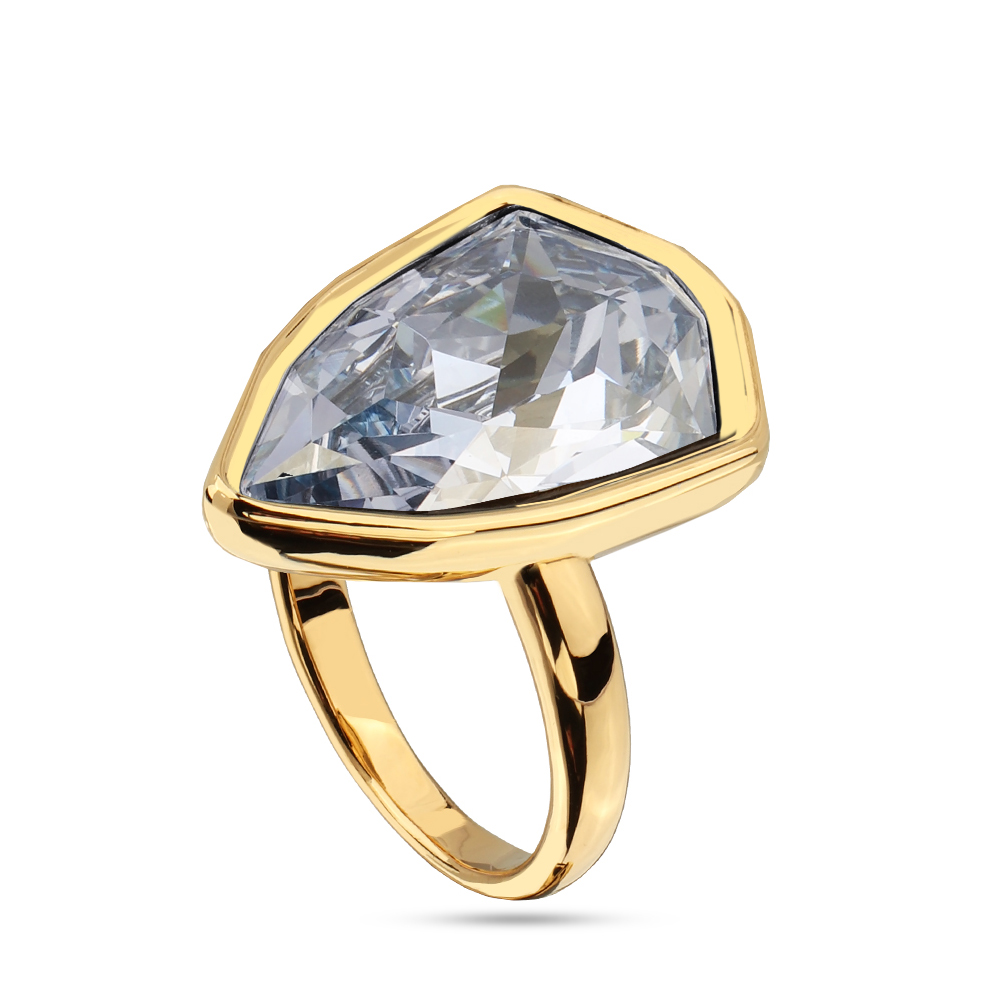 Описание: Изготовлено из ювелирного сплава на основе латуни с гальваническим покрытием золотом. Изделие украшают кристаллы SW серо-голубого цвета. Размер украшения 2х1, 5см.