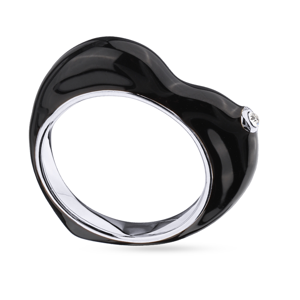 Кольцо Сердцебиение (эмаль черная; покрытие родий)